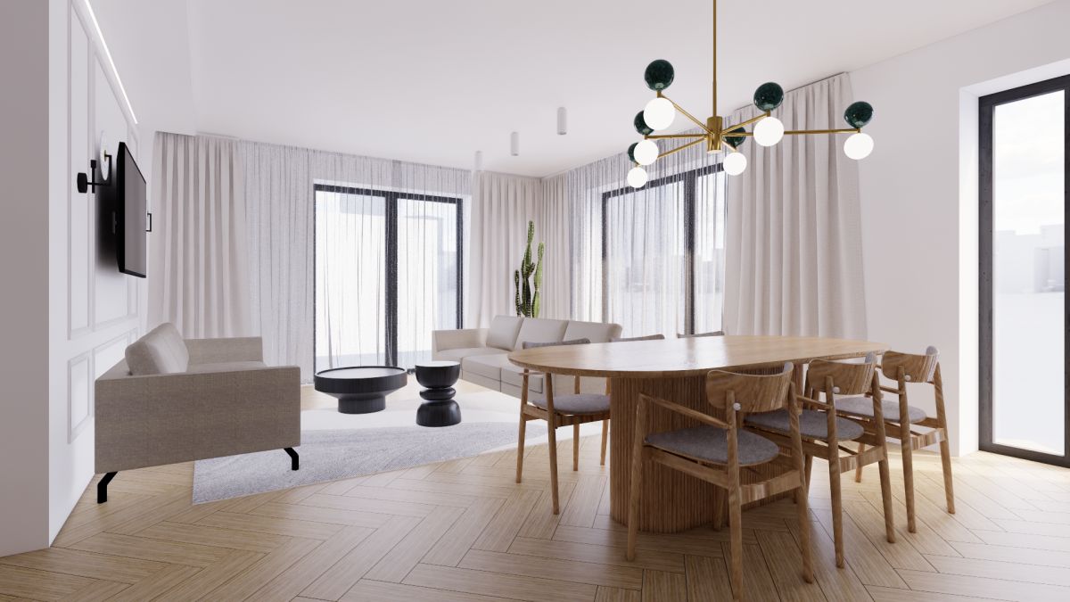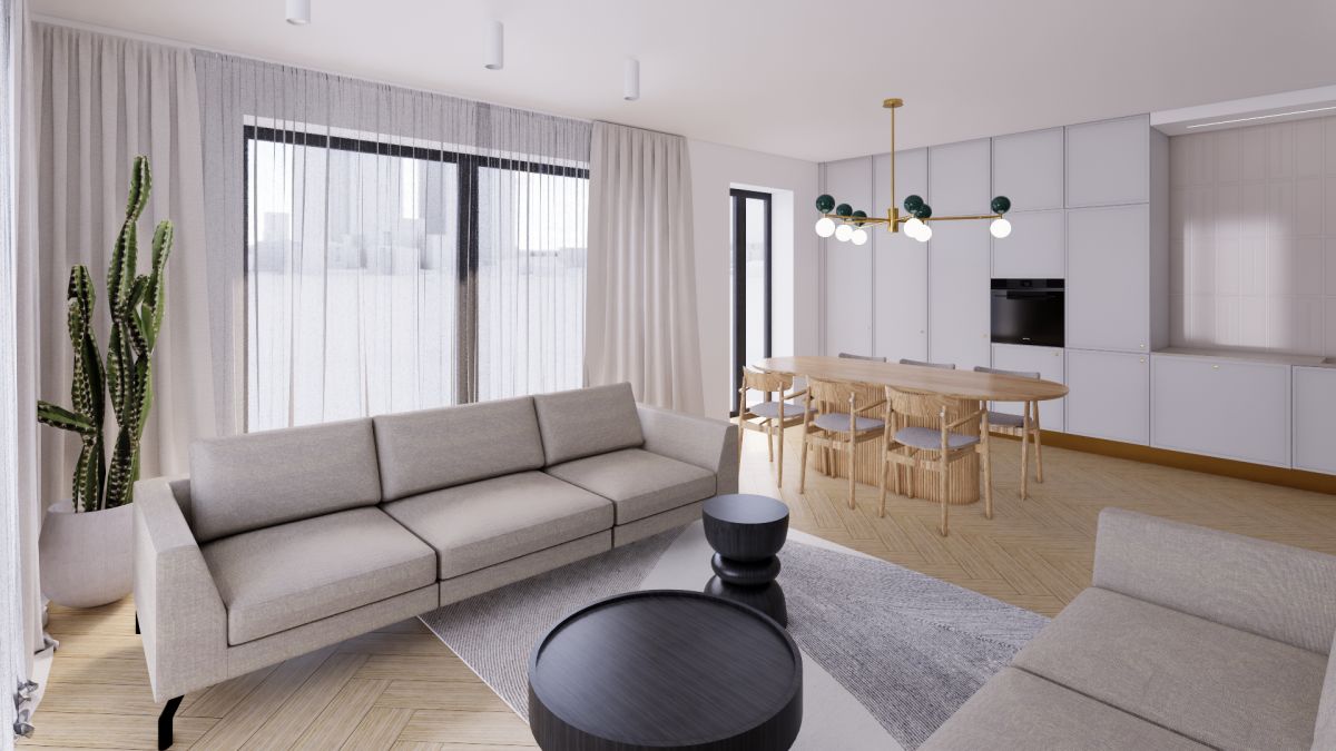 Cały segment to ponad 183m2 powierzchni na 3 kondygnacjach. Na parterze największych pomieszczeniem jest salon połączony z kuchnią (wizualizacje tej przestrzeni są dostępne w zdjęciach). Tuż obok znajduje się łazienka o powierzchni około 2,5m2 z możliwością jej powiększenia.