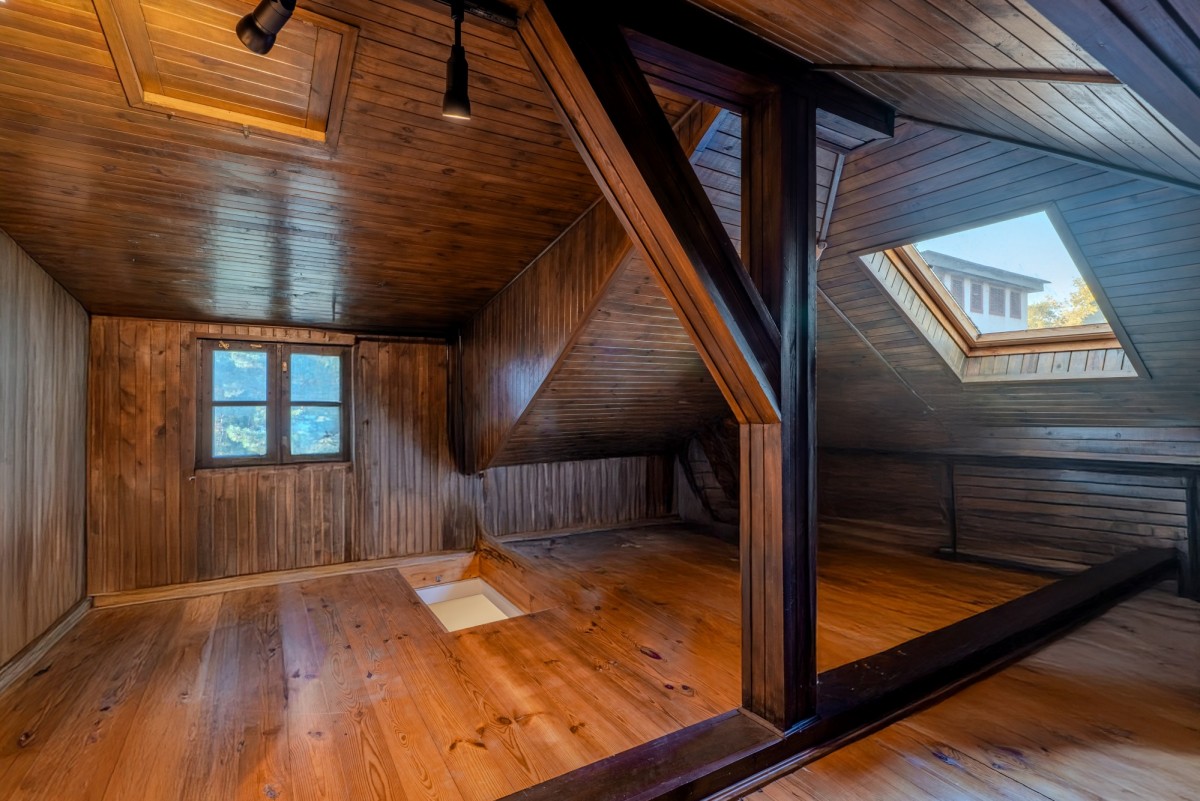 Poddasze domu jest w pełni wykończone i może służyć jako dodatkowy pokój zabaw dla dzieci lub przestrzeń do przechowywania.