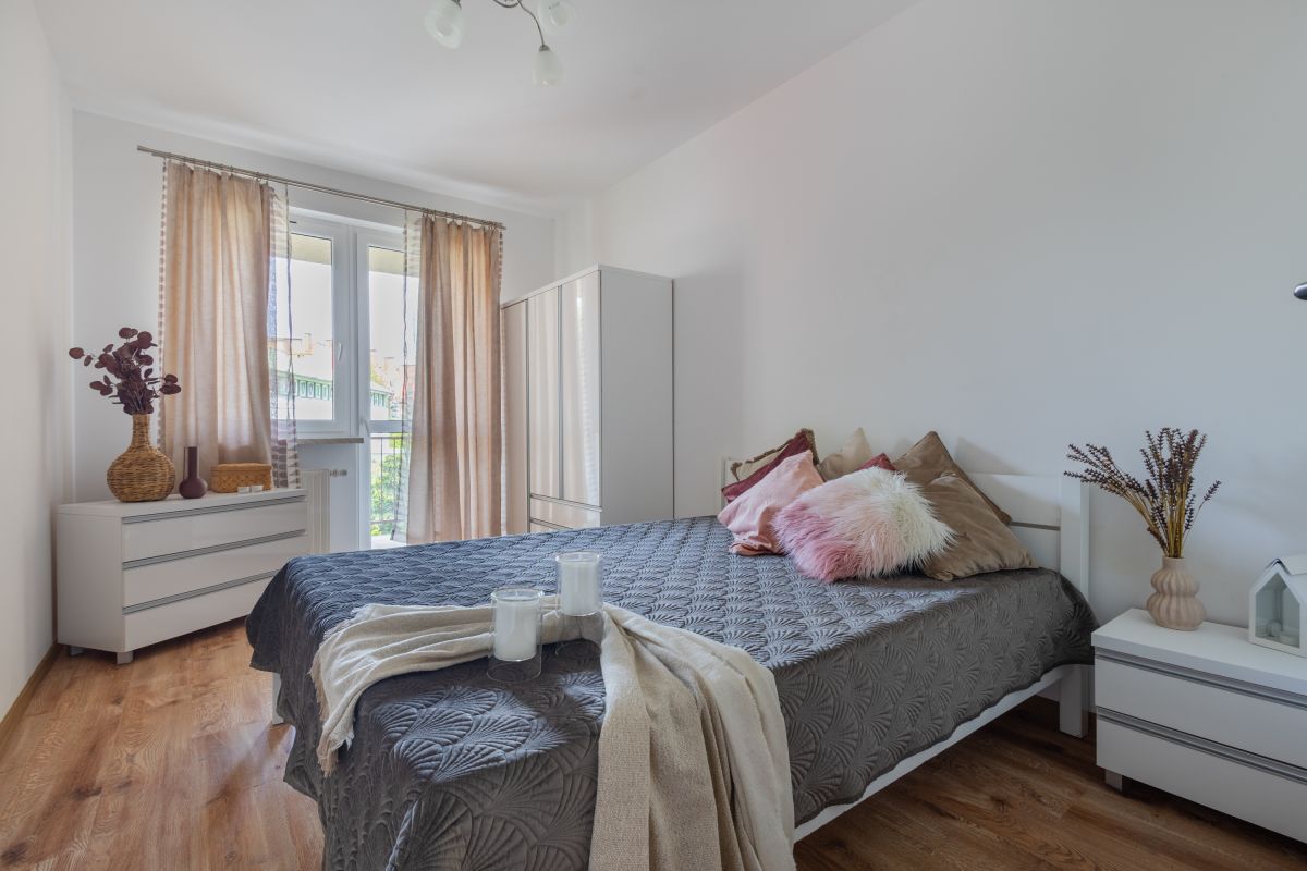 Mieszkanie znajduje się na zamkniętym, strzeżonym osiedlu. Maksymalnie 3 minuty spacerem zajmie nam dotarcie do sklepów, restauracji, na pocztę oraz wielu innych niezbędnych miejsc.