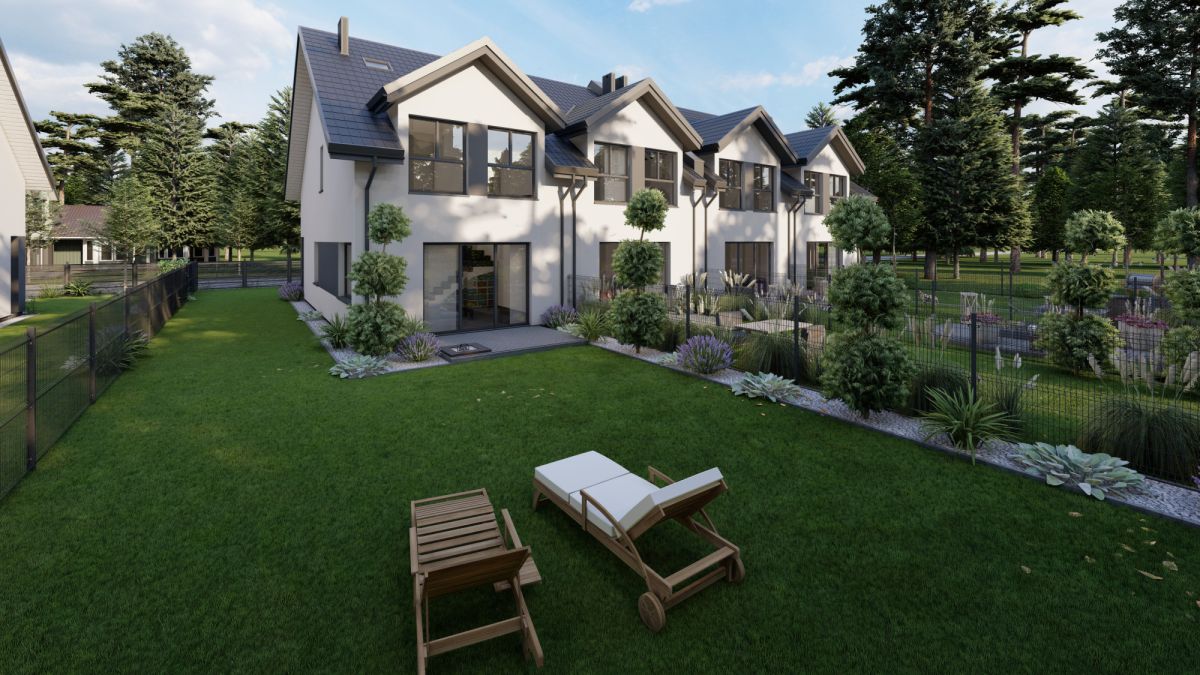 Każdy lokal posiada własny, ogrodzony ogród z wykończonym tarasem, idealnym na poranną kawę czy wieczorny odpoczynek: