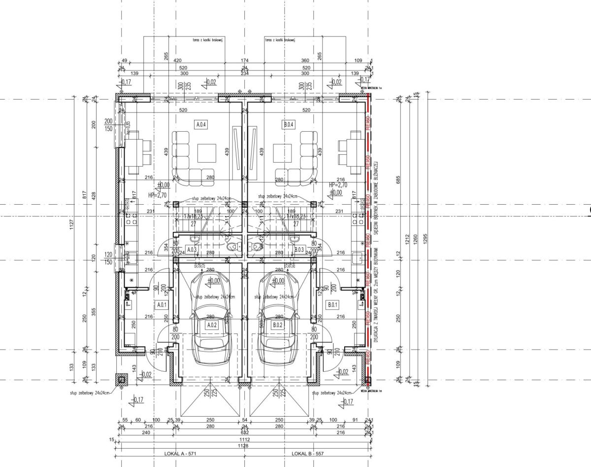 Segmenty skrajne: działki o powierzchni ok. 320 m².