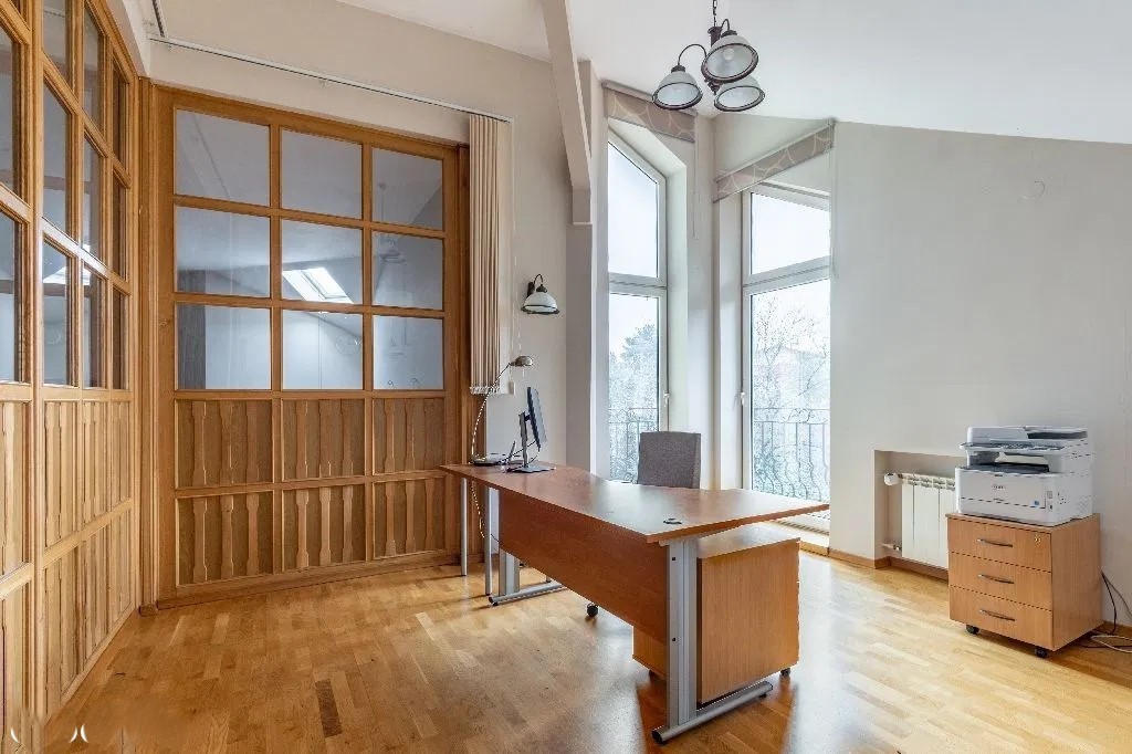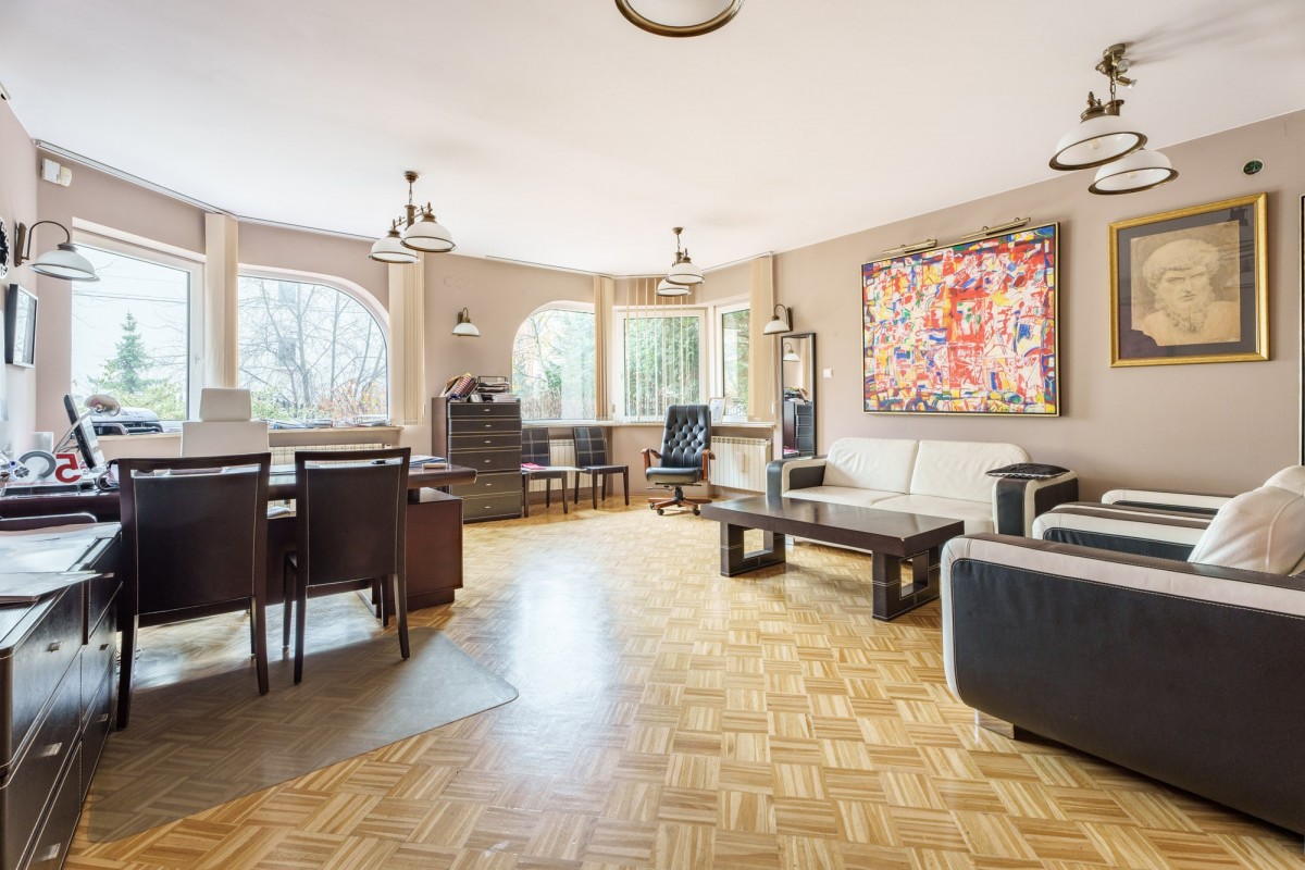 Około 410 m2 powierzchni użytkowej na parterze i I piętrze oraz dodatkowo 200 m2 w przyziemiu (większość pomieszczeń posiada okna), daje wiele możliwości adaptacyjnych. W pełni monitorowany budynek w dobrym stanie technicznym, wszystkie pomieszczenia klimatyzowane. Dodatkowo garaż wolnostojący na 2 samochody oraz możliwość zaparkowania kolejnych kilku aut na zamykanym terenie posesji.