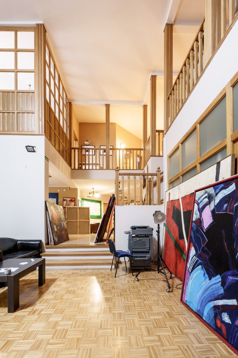 Przestronny dom na trzech kondygnacjach z ogromnym potencjałem. Salon w najwyższym punkcie ma ok. 7m wysokości. Podłogi wykończone mozaiką drewnianą. W kuchniach, łazienkach, holu, oraz piwnicy podłogi wyłożone gresem oraz terakotą. Na parterze i poddaszu ogrzewanie podłogowe. Schody oraz balustrady na poddaszu wykończone drewnem. Stolarka drzwiowa drewniana.