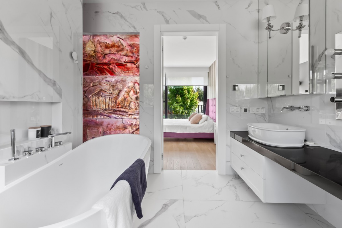 • Przylegająca, elegancka łazienka (9,60 m²) oraz imponująca garderoba (19,40 m²) tworzą prywatną, luksusową strefę właścicieli.