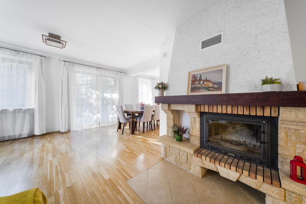 Dom ogrzewany jest gazowo oraz kominkiem, dzięki czemu komfort zapewniony jest przez cały rok.