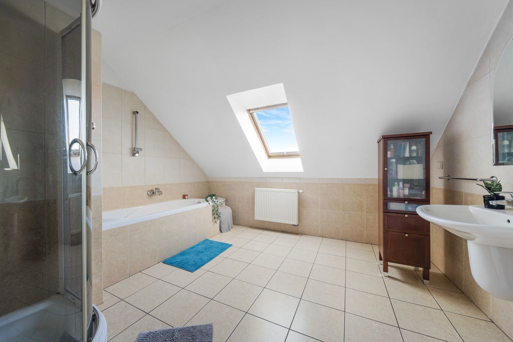 – pokój kąpielowy z wanną i kabiną prysznicową, naturalnie doświetlony przez okno, z komfortową podgrzewaną podłogą.- 7,50m2