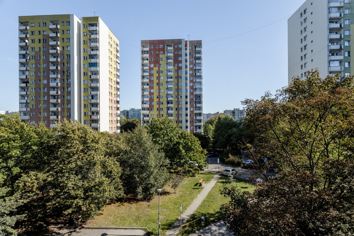 Mieszkanie znajduje się na 3. piętrze w 13-piętrowym budynku z windą oddanego do użytku w 1976 roku. Budynek jest po termomodernizacji, z odświeżonymi klatkami schodowymi oraz wymienionymi windami zjeżdżającymi do samego poziomu 0 – stąd jest bezproblemowy dostęp do osób starszych i niepełnosprawnych, które nie muszą wchodzić po nawet jednym schodku.