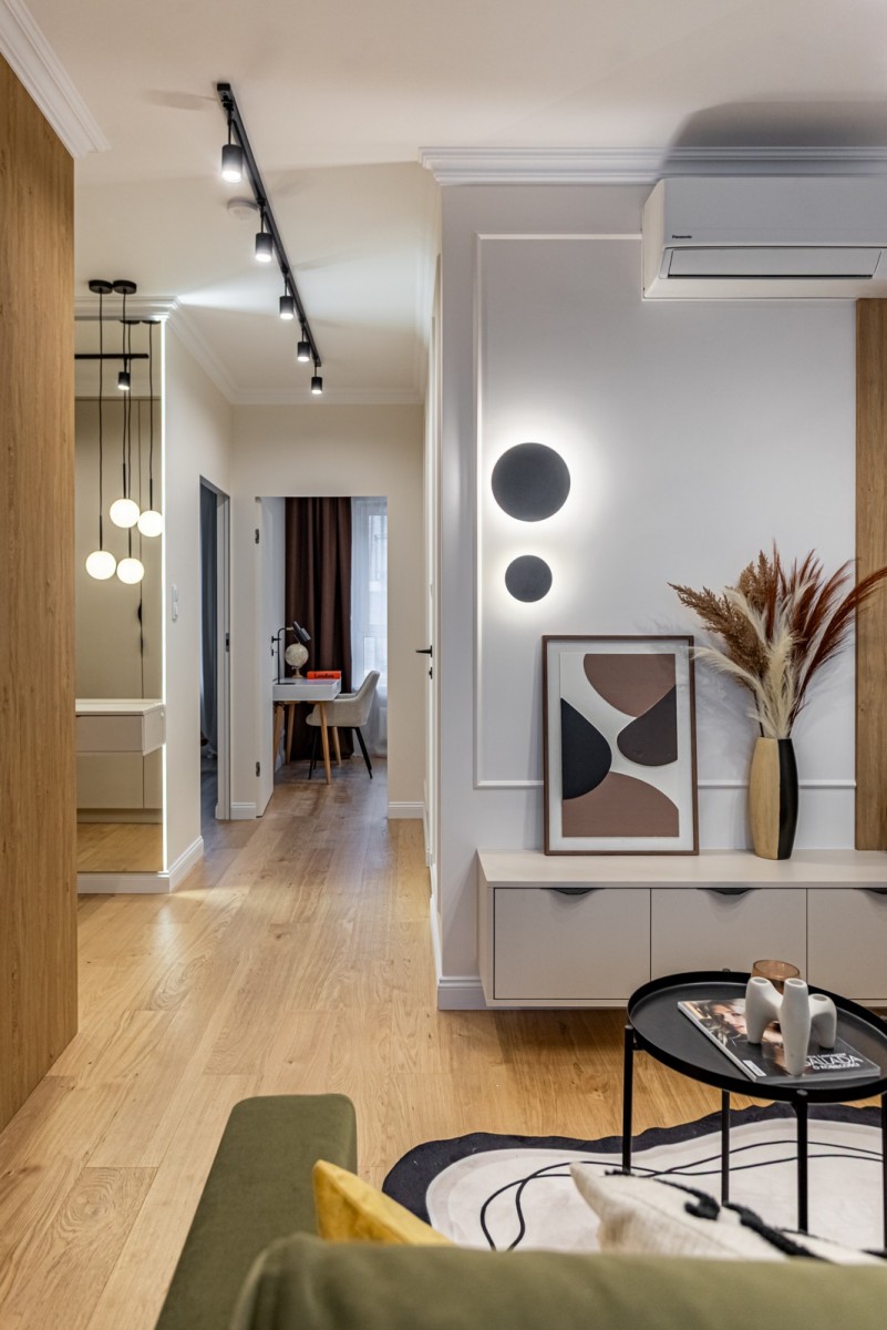 Mieszkanie zostało zaprojektowane tak, aby wykorzystać każdy centymetr powierzchni. Wykończone w wysokim standardzie, z dbałością o detale.