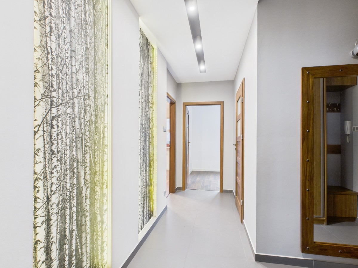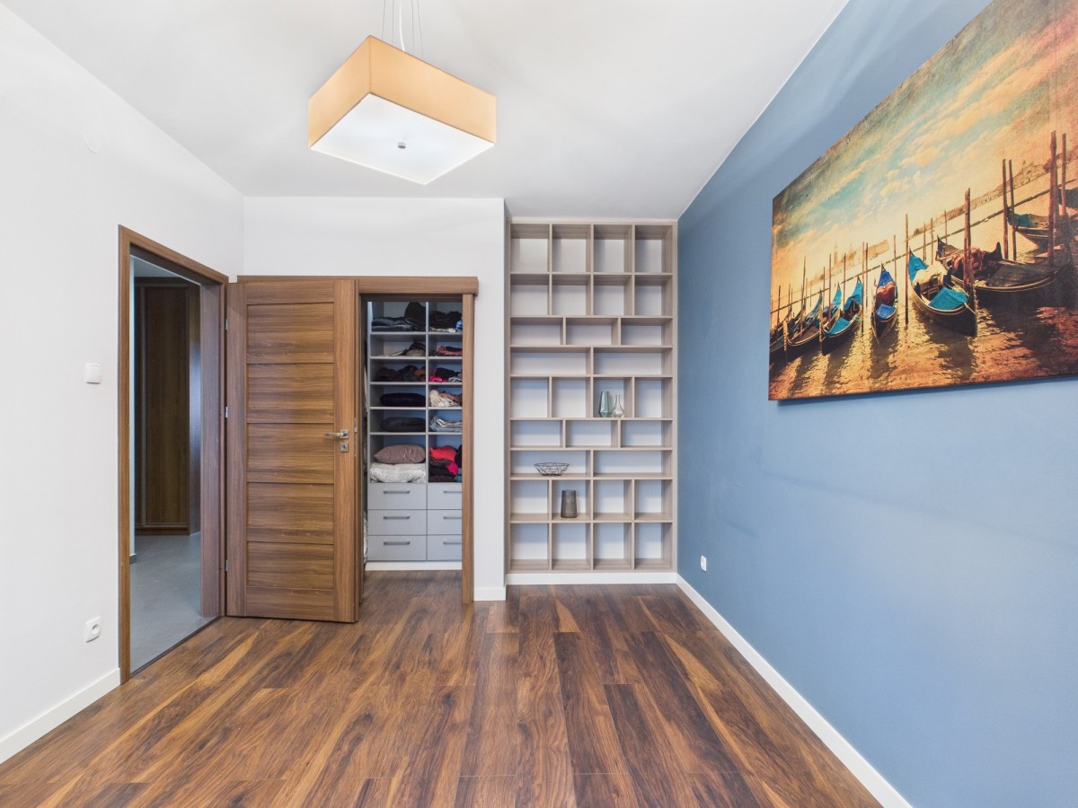 Mieszkanie zostało wykończone z wysokiej jakości materiałów, urządzone funkcjonalnie z dbałością o detale. Meble w kuchni, przedpokoju, łazience, sypialni oraz garderobie zostały wykonane według indywidulanych projektów.
