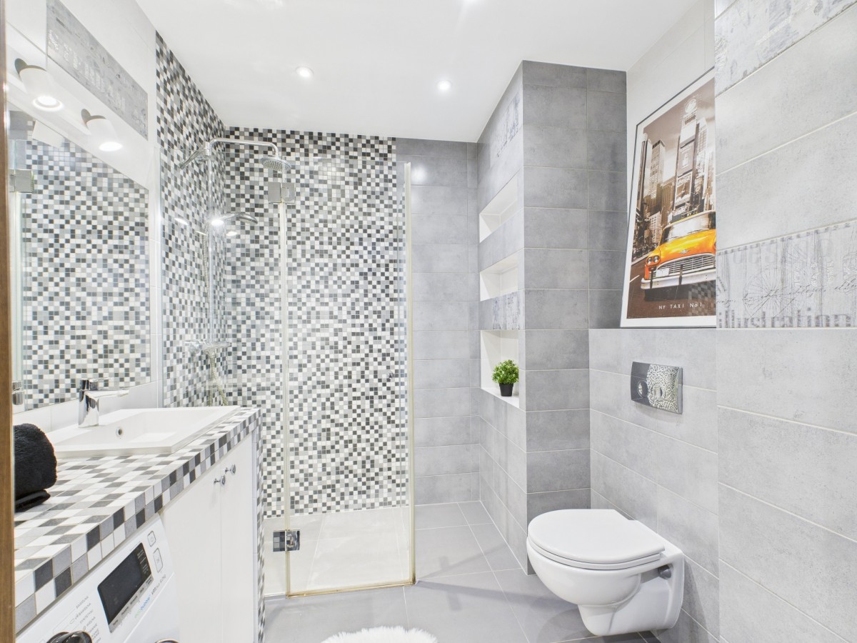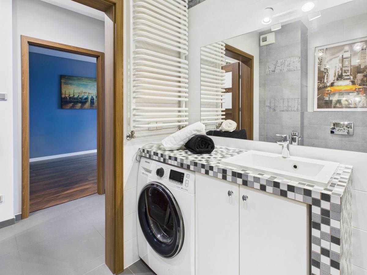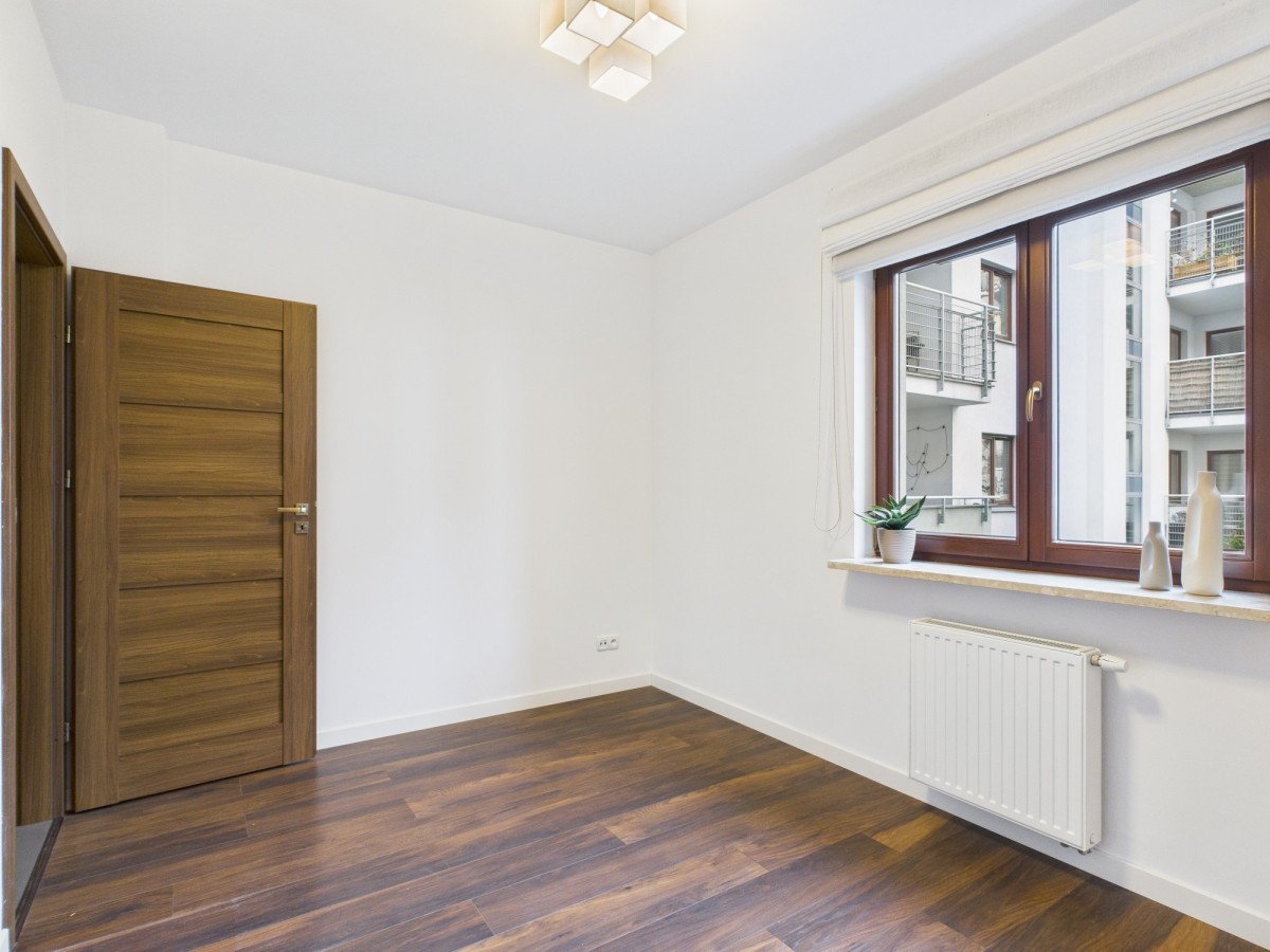 W oknach zamontowano praktyczne, dwuwarstwowe rolety rzymskie (firana + zasłona). Mieszkanie wyposażone jest w sprzęt AGD (zmywarka, lodówka, piekarnik, płyta indukcyjna, okap, pralka).