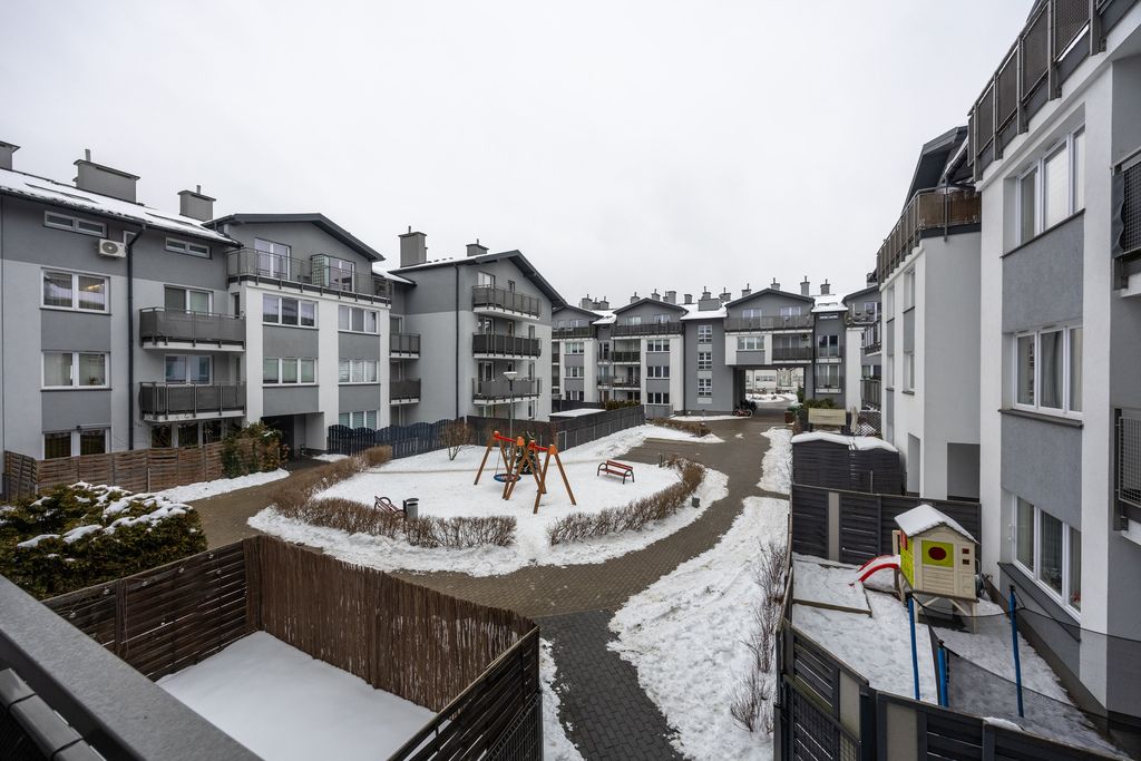 Budynek został wybudowany w 2018 roku, jest 3-piętrowy, wyposażony w windę. Mieszkanie znajduje się na 1. piętrze. Osiedle jest kameralne, spokojne i bardzo dobrze utrzymane, z placem zabaw oraz dużą ilością zieleni, co czyni je doskonałym miejscem zarówno dla rodzin, jak i osób ceniących ciszę i komfort. Najbliższy przystanek autobusowy znajduje się w odległości 400 m. W około 20 minut spacerem (1,5 km) można dotrzeć do stacji metra Trocka i Zacisze oraz stacji kolejowej Zacisze-Wilno. Dodatkowym atutem jest łatwy wyjazd na główne arterie Warszawy.