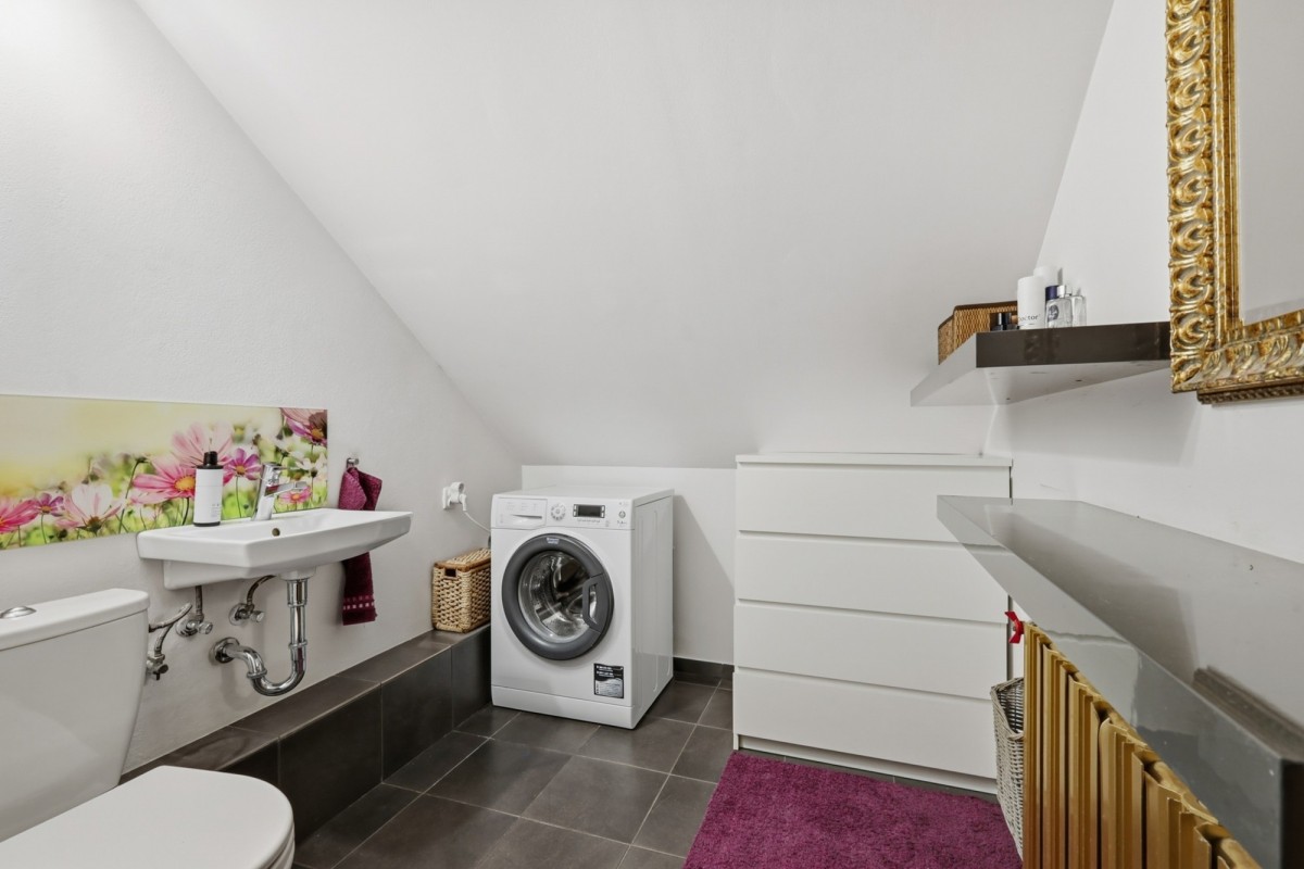 Na poziomie parteru znajduje się jasna kuchnia z parkietem jesionowym, przestronny salon stanowiący centralną część domu oraz łazienka z prysznicem. Układ sprzyja zarówno życiu rodzinnemu, jak i spotkaniom towarzyskim.